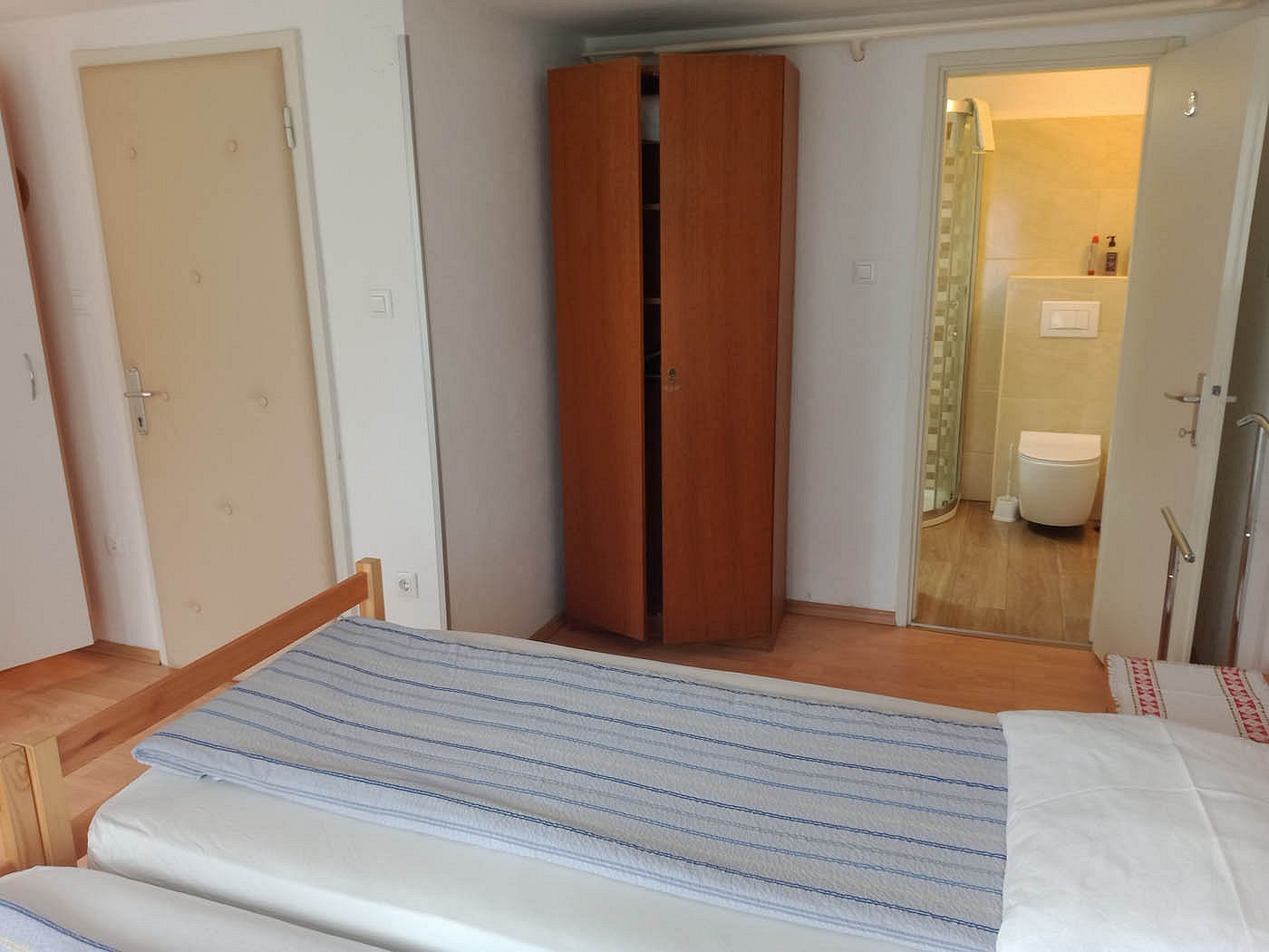 - Room 1 (2 persons) includes a refrigerator and a kettle for preparing hot drinks.