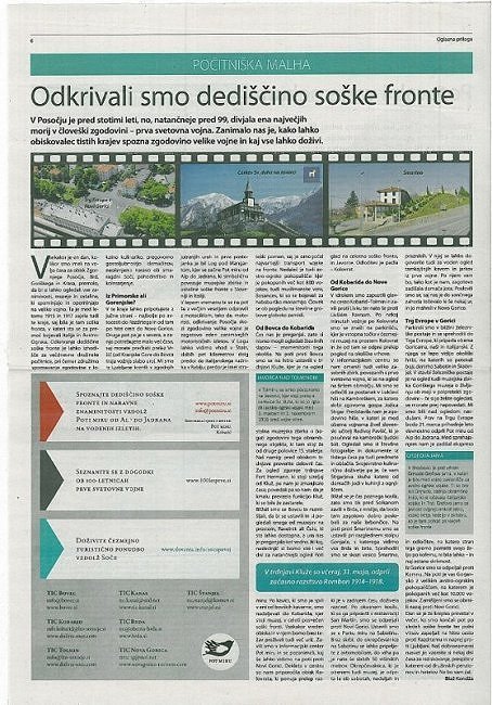 Objava na temo soške fronte in Poti miru v Delovi prilogi Počitniška malha.